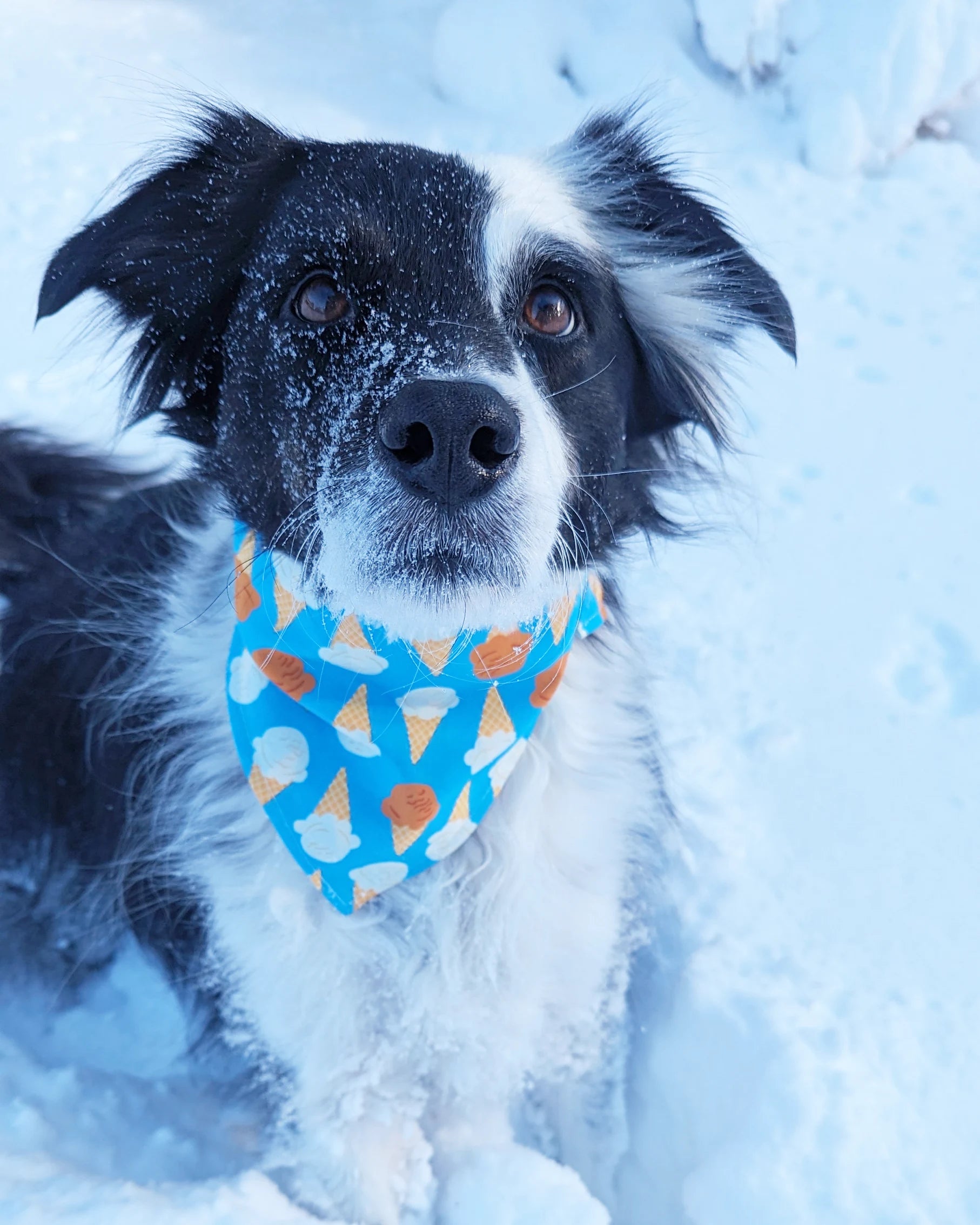 With a delicious ice cream cone design on a light blue background, this Tiedana is the perfect accessory for any stylish dog. The soft and durable fabric will hold up against all kinds of adventures and make your furry friend the envy of all their canine pals.